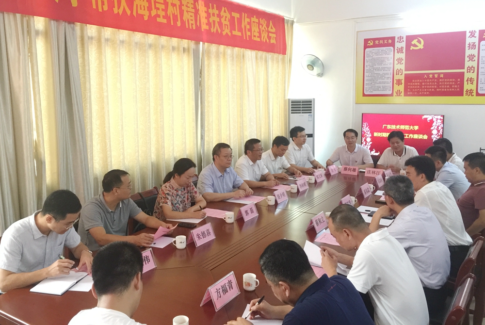 学校领导一行与惠来县镇村有关负责同志在村委会举行了座谈。惠来县县委常委、统战部部长蔡汉春代表惠来县委县政府欢迎学校领导一行到海埕村指导扶贫工作,感谢学校对帮扶海埕村所做的努力,充分肯定学校驻村工作队几年来开展精准扶贫工作所取得的成效,并向学校领导介绍了惠来县基本情况、精准扶贫工作开展现状、面临的困难以及下一步的发展规划。