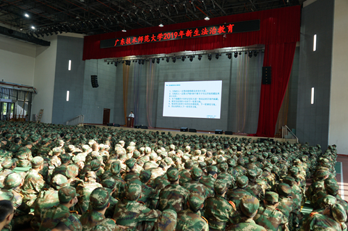 加强大学生法治宣传教育,是全面贯彻党的教育方针的基本要求,也是大学生健康成长成才的需要。为提高伟德官网普法教育的针对性和实效性,提升大学新生法治意识,9月25日,由校学生处、依法治校办主办,青少年法治教育基地、校园文化建设与社团活动指导辅导员工作室承办的2019年新生法治教育在白云校区学生活动中心举办。白云校区约5000名新生参加了本次教育活动。
