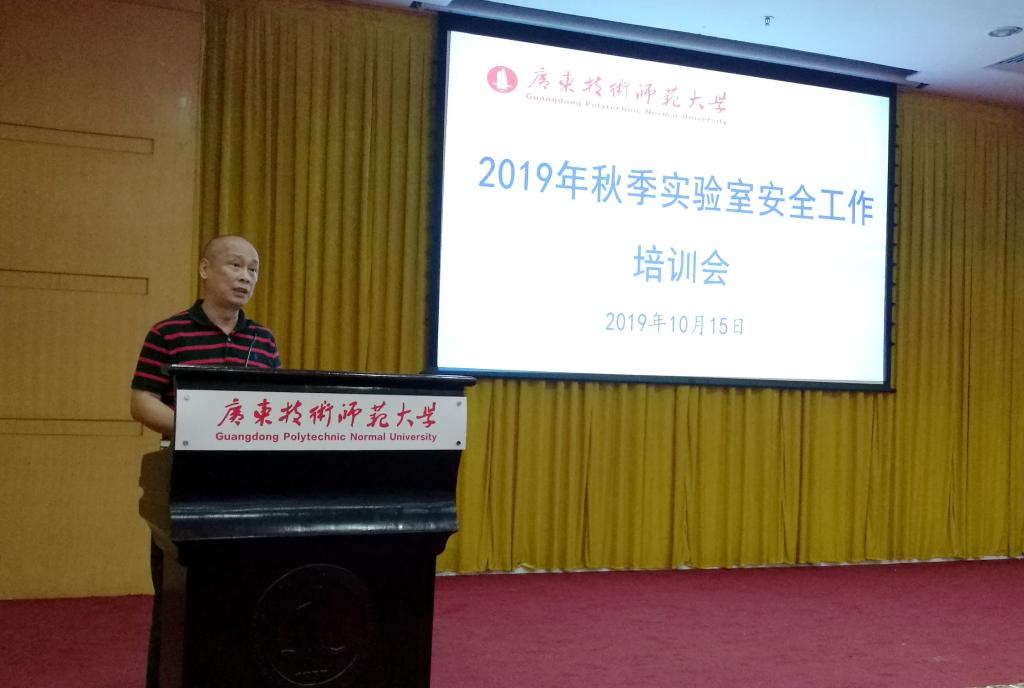 为扎实推进“不忘初心、牢记使命”主题教育,以问题为导向,将学习教育与业务工作紧密结合起来,真抓实管,做深做细,不断强化学校实验室工作人员的安全意识,推动实验室安全管理责任落实,10月15日下午,学校在东校区第一教学楼208讲学厅举办2019年秋季实验室安全工作培训会。副校长潘自勉出席会议并讲话,资产与实验室管理处、教务处、科研处、保卫处、后勤服务管理处相关人员及广东工业实训中心、网络信息中心、各学院分管实验室建设工作副院长及实验室工作人员参加培训会。
