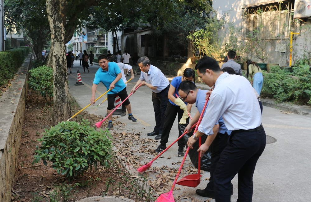 16:00,全体机关党委成员深入校园,在行政楼、工业中心、综合馆、图书馆、春晖园食堂、实验楼、小白楼前,在校道上,在绿化带里,同志们拿着扫把、耙子、垃圾铲等清洁工具,不怕脏、不怕苦、不怕累,撸起袖子就干了起来,从打扫路面的落叶、烟头,到清除绿化带中的塑料袋、果皮果屑……在大家的共同努力下,落叶垃圾很快被清运,多个卫生死角被消灭,整个校园很快变得干净起来。
