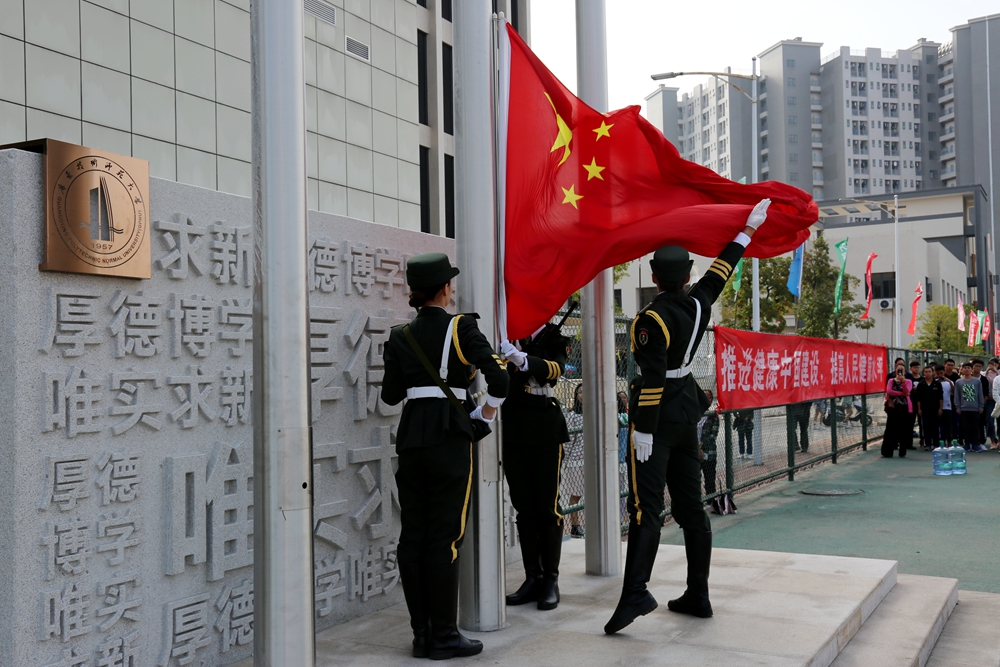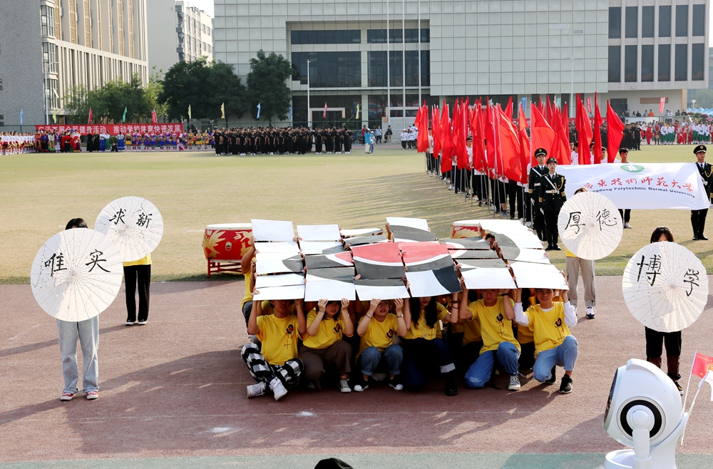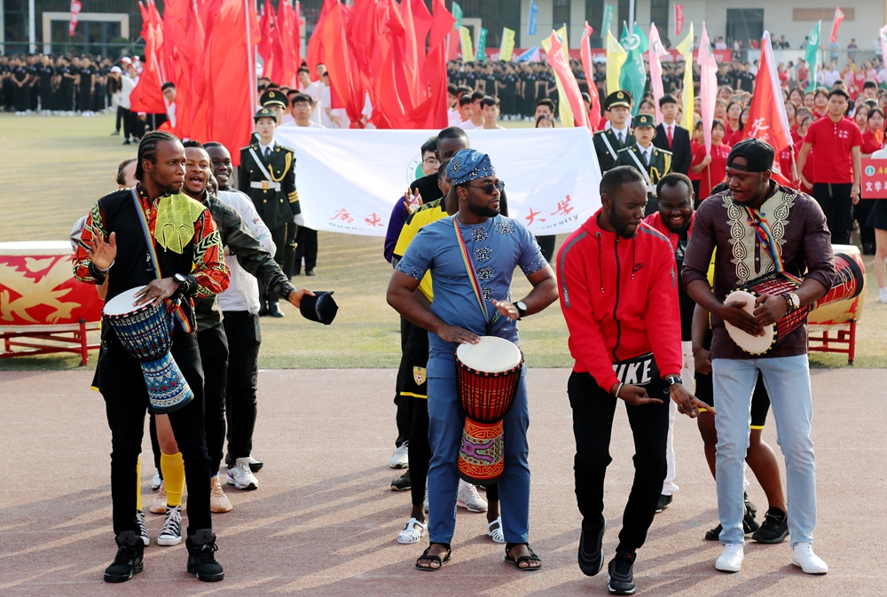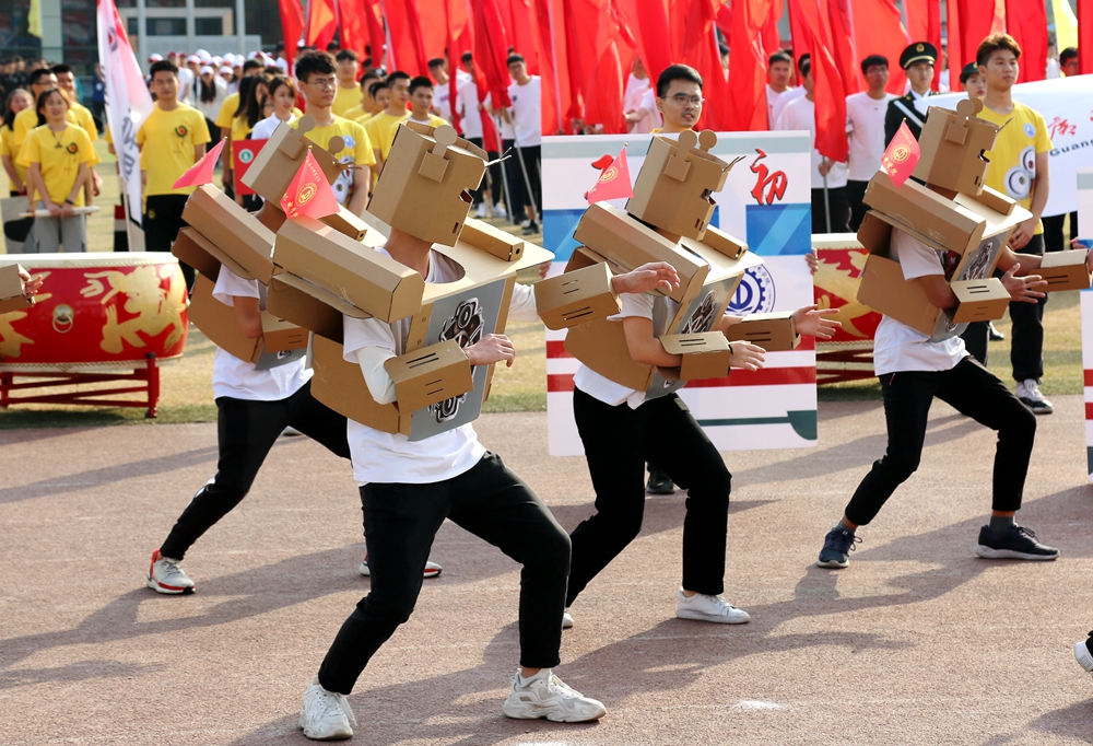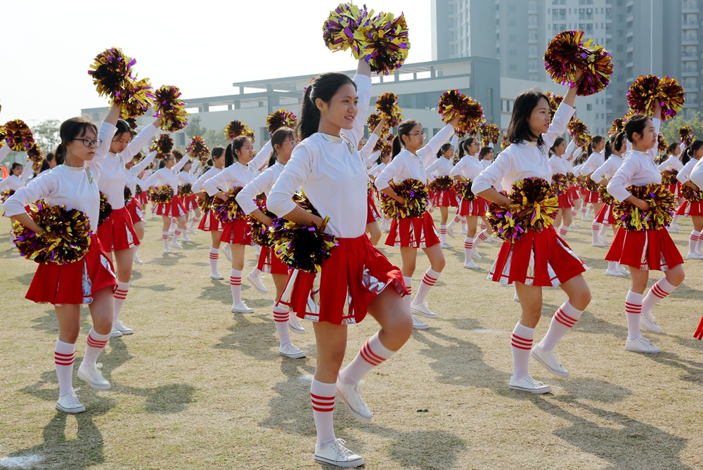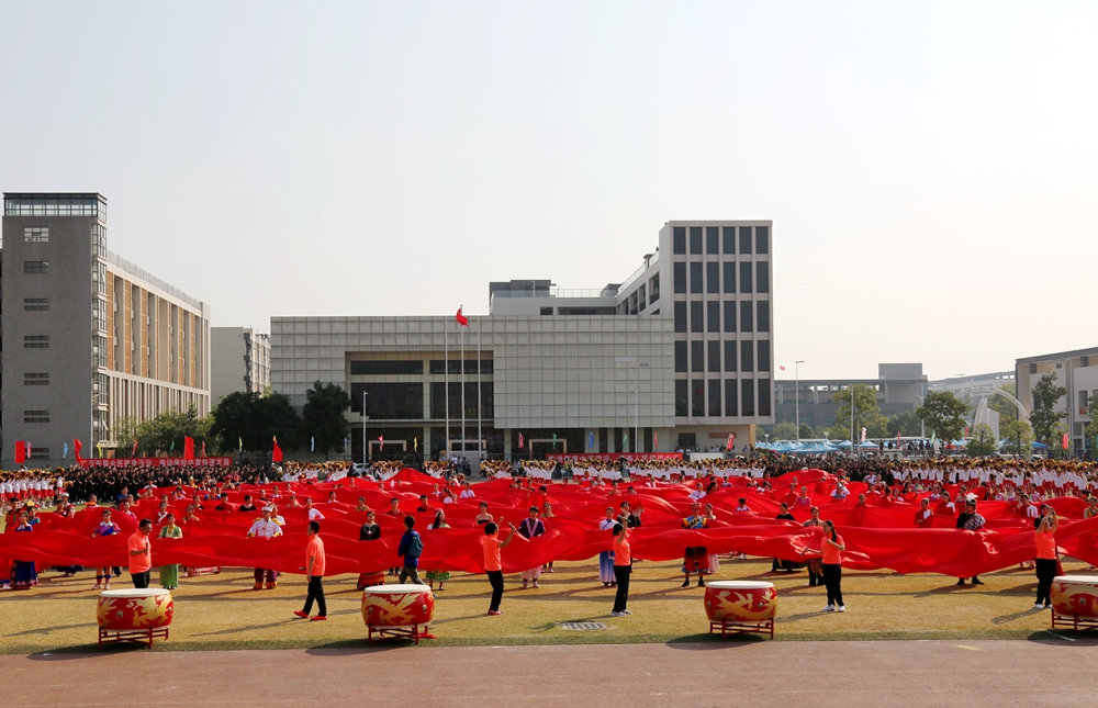 随后,校园嘉年华团体项目压轴上演。英姿飒爽、动作炫酷的花式礼宾枪表演,刚中带柔、气势磅礴的国家非物质文化遗产项目蔡李佛拳表演,活力四射、动感十足的啦啦操、舞蹈表演,节奏明快、激昂亢奋的男女高音演唱《爱我中华》更是极大地激发起全场师生的民族团结和爱国情感,将开幕式推向高潮。