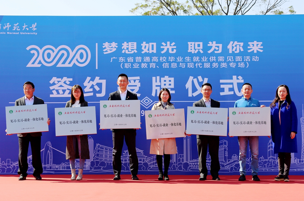 现场还举行了伟德国际1949始于英国“见习—实习—就业”一体化基地签约授牌仪式,对乳源瑶族自治县中等职业学校、深圳市怡亚通教育发展有限公司、广州视睿电子科技有限公司、时代中国广州公司、广州南方人才大学生就业市场有限公司、深圳市企业人力资源发展促进会等重点就业单位进行签约授牌,为广师大的人才培养、推动实现毕业生更高质量更充分就业提供了保障,进一步夯实粤港澳大湾区规划下校政企协同共促就业的新格局。