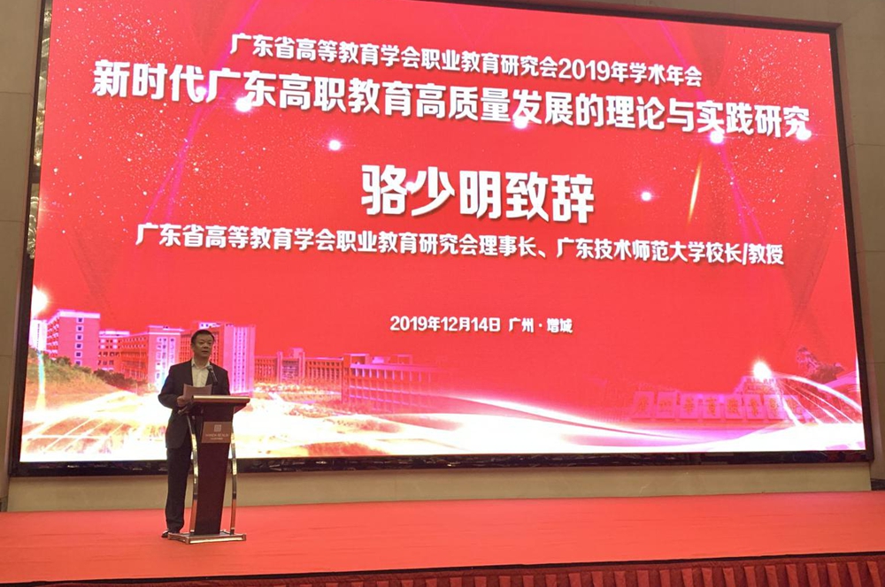 12月14日,由广东省高等教育学会职业教育研究会主办、广州华商职业学院承办的广东省高等教育学会职业教育研究会2019年学术年会在增城召开。广东省高等教育学会秘书长、广东省教育研究院高等教育研究室副主任孙丽昕,广东省高等教育学会职业教育研究会理事长、学校校长骆少明,伟德官网副校级干部、职业教育研究院院长黄崴,广东省高等教育学会职业教育研究会秘书长、教育科学与技术学院院长陶红,广州华商职业学院院长王乐夫等各高职院校的校长、教科研人员、企业代表等,广州华商职业学院的教师、伟德官网职业技术教育学专业的研究生200余人参加了年会。