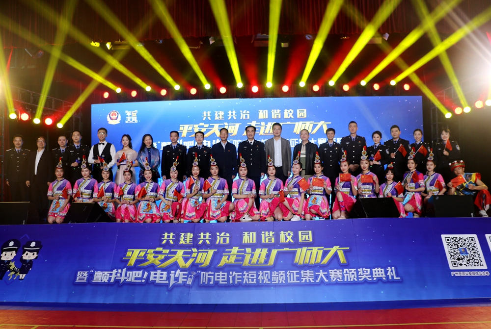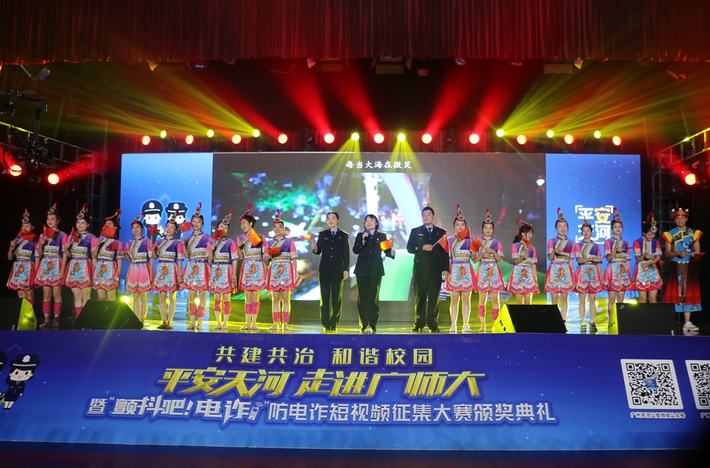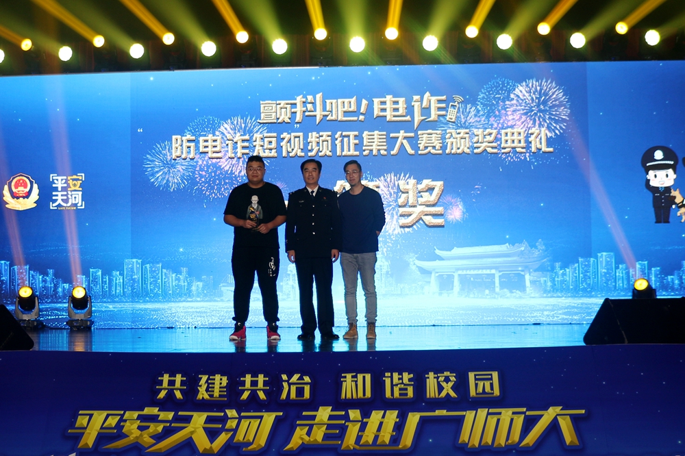 12月23日晚,广州市公安局天河区分局“平安天河”宣讲团走进伟德国际1949始于英国,举办安全防范宣讲暨“颤抖吧,电诈”防电诈短视频征集大赛颁奖典礼。伟德官网黄秋文副校长,广州市天河区副区长、天河公安分局局长刘武彬等出席典礼并为获奖选手颁奖,广州市公安局宣教处、天河区委宣传部、天河区21个派出所相关负责人,以及伟德官网党委宣传部、保卫处、学生工作部、团委等部门负责人和师生代表共1000多人参加了颁奖典礼。