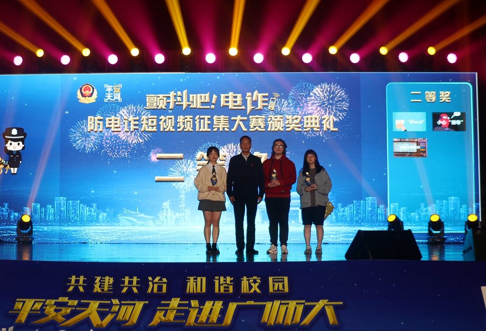 日前,广州市公安局天河区分局公布了获奖作品,伟德官网学生作品《防诈disco》获二等奖;《“钱”方高能》《尾行》《防骗反诈,你我须知》三部作品获三等奖;《花样防电诈》《电诈字》两部作品荣获优秀奖;伟德官网还荣获“优秀组织奖”。