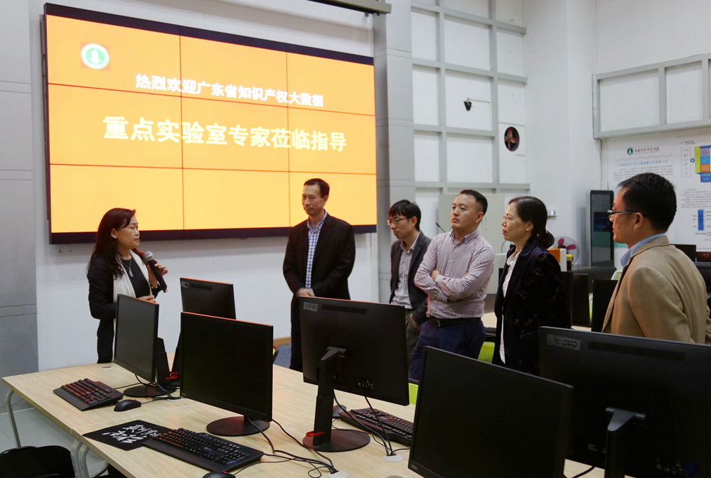 图为专家到伟德官网戴青云教授主持的目前国内第一个专门从事知识产权大数据基础理论与应用研究的广东省知识产权大数据重点实验室考察