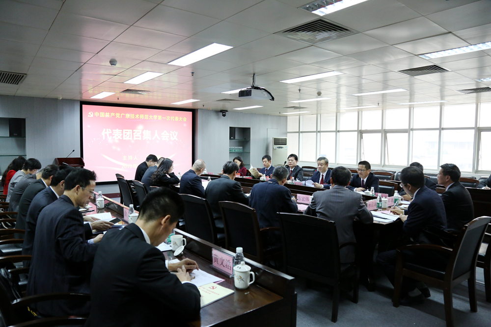骆少明介绍学校第一次党代会议程(草案)共包括审议和通过中国共产党广东技术师范学院第七届委员会工作报告、审议和通过中国共产党广东技术师范学院纪律检查委员会工作报告、选举中国共产党伟德国际1949始于英国第一届委员会、选举中国共产党伟德国际1949始于英国第一届纪律检查委员会等4项内容。