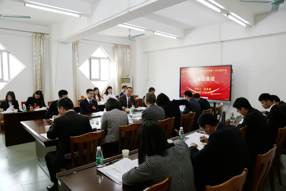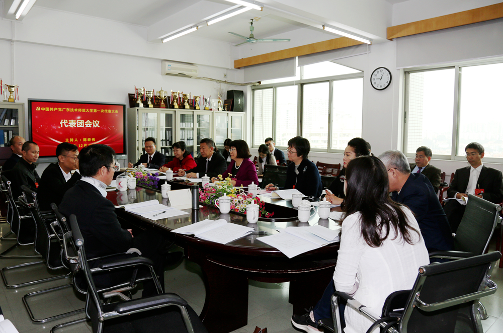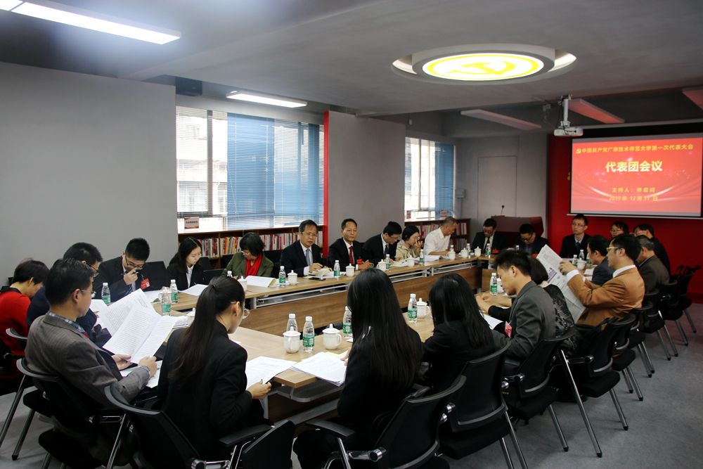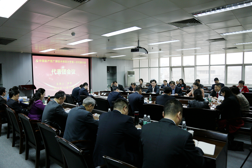 12月31日,出席中国共产党广东技术师范学院第一次代表大会的代表们分成8个代表团,以高度的政治责任感和历史使命感、对党的事业和学校发展高度负责的态度,认真审议学校党委书记凌靖波同志所作的党委工作报告、学校党委副书记、纪委书记贺勇同志所作的学校纪委工作报告。