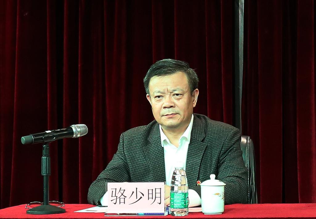 学校校长、“不忘初心、牢记使命”主题教育领导小组副组长骆少明主持会议并讲话。