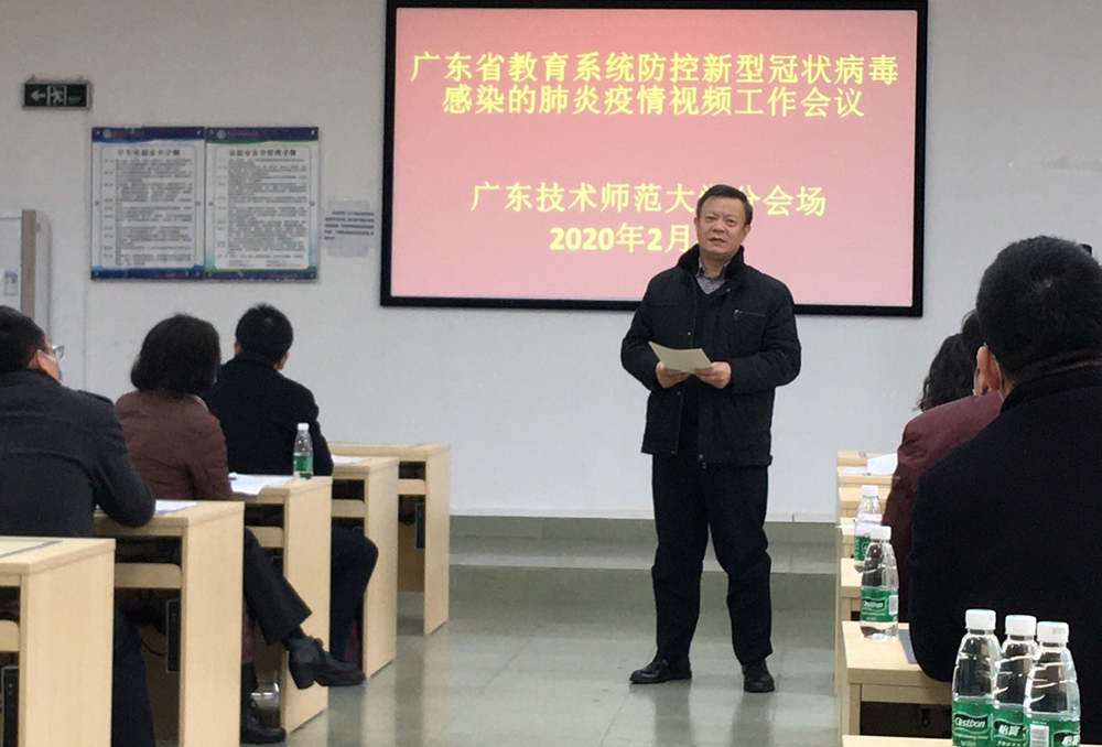 学校党委副书记、校长骆少明讲话。他指出,学校要深入学习贯彻全省教育系统防控新型冠状病毒感染的肺炎疫情视频工作会议精神,做好疫情防控工作。疫情发生以来,学校根据中央、省委、省教育厅要求做了大量工作,认真贯彻落实习近平总书记提出的“坚定信心、同舟共济、科学防治、精准施策”的十六字方针,持续做好了各项疫情防控工作,对工作在一线的领导干部表示感谢。并指出疫情形势十分严峻,学校要做好以下三个方面的工作。一要持续加强精准严密的防控措施。希望各单位和广大师生要进一步认识疫情防控的严峻性和复杂性,绝不能有丝毫放松和丝毫懈怠,面对即将到来的疫情关键节点期的考验,要始终保持警惕、打起十分精神、制定周密的措施把防控工作做好。二要加强沟通,结合疫情防控情况,推进白云校区建设和河源校区建设。加强与属地政府、校区承建方沟通,确保建设工期如期完成。三要加强风险评估,认真制定相关工作方案,扎实做好开学准备工作。他指出,要深入贯彻全省教育系统防控疫情视频工作会议精神,要坚持把师生生命安全摆在第一位,绝不可仓促开学、准备不足开学,严格要求学生不能提前返校,开学时间视疫情发展而定,对滞留在湖北的教工和学生,要认真摸排清楚,每个人都要落实到具体的工作人员负责,全面跟踪,掌握他们的动态,做到心中有数。要灵活运用网络形式,做好本科生和研究生毕业生论文指导、毕业生就业指导和行政人员值班办公等工作,群策群力,凝聚力量,坚决做好防控工作。