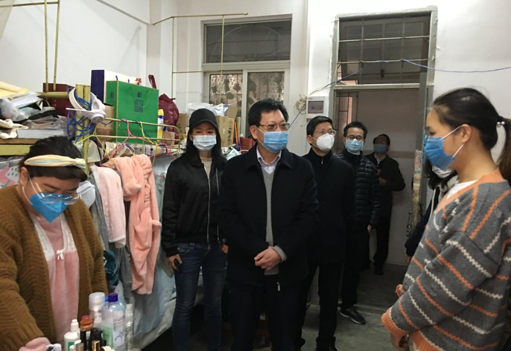 凌靖波随后率队走访了财务处,了解开学初财务资金保障运行情况。在学生处,凌靖波认真听取了学生处副处长全翠珍关于学生防疫工作情况的汇报,并走访学生宿舍,看望和慰问留校本科生和研究生,亲切询问学生们学习和生活状态,及时回应了他们的关切,对他们在防疫期间的表现给予充分肯定,提出了有关防疫要求。凌靖波指出,当前特殊时期最重要的任务是做好学生的自我防护工作,确保学生生命安全和身体健康是学校压倒一切的工作,要认真细致做好学生的心理工作,要求学生按照《伟德国际1949始于英国防控新型冠状病毒感染的肺炎疫情时期学生行为规范》来严格要求自己,强化主人翁意识,主动调整心态,积极配合学校防控工作,相关部门和单位还要密切关注留校少数民族学生的情况,做好各项防疫工作,切实维护学生生命安全和身体健康。
