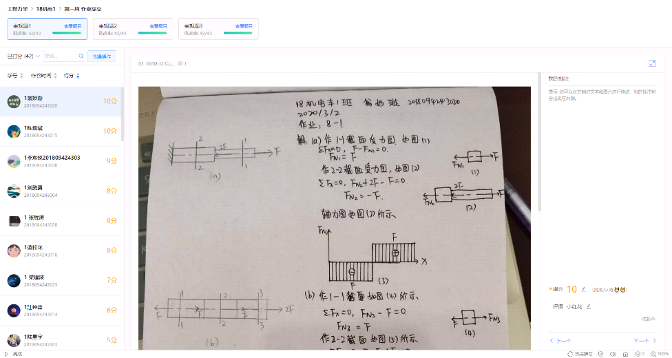 在教学实践中,本课程也根据实施情况思考了如何更好地改善“互联网+课堂”的教学模式。线上教学的优势是可以在督促自学的基础上,推动课堂的翻转。在远程教学的情况下,如何督促学生学习一直是一个难点,这也是本学期课程在线上采用“多环节设计,相互关联推进”模式的一个主要原因。而针对理论课程的任务驱动教学设计,应该如何规划任务设计的难度和深度,才能有所成效,也是本课程教学设计中的难点。