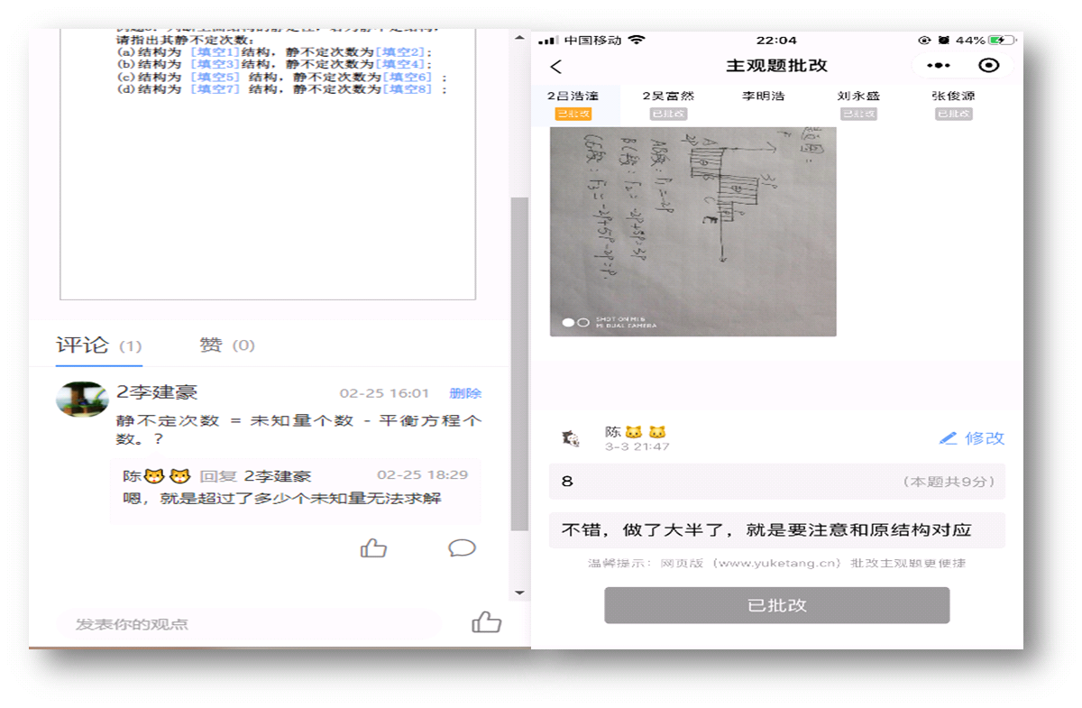 互动直播及作业布置:根据前期推送资源的学习反馈及学生提问,通过腾讯会议直播方式进行答疑和互动交流,并通过雨课堂的试卷库进行作业布置。