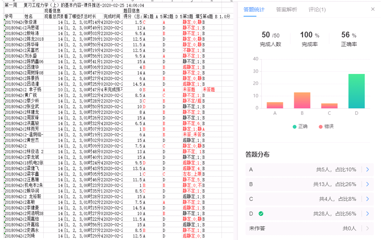 为进一步便于数据追踪和班内活动组织,该课程在雨课堂中以行政小班为单位开展线上教学,学生个体表现追踪落实到各班学委和助教学生,从而避免教学大班统计中数据监督不易于落实到人等问题。