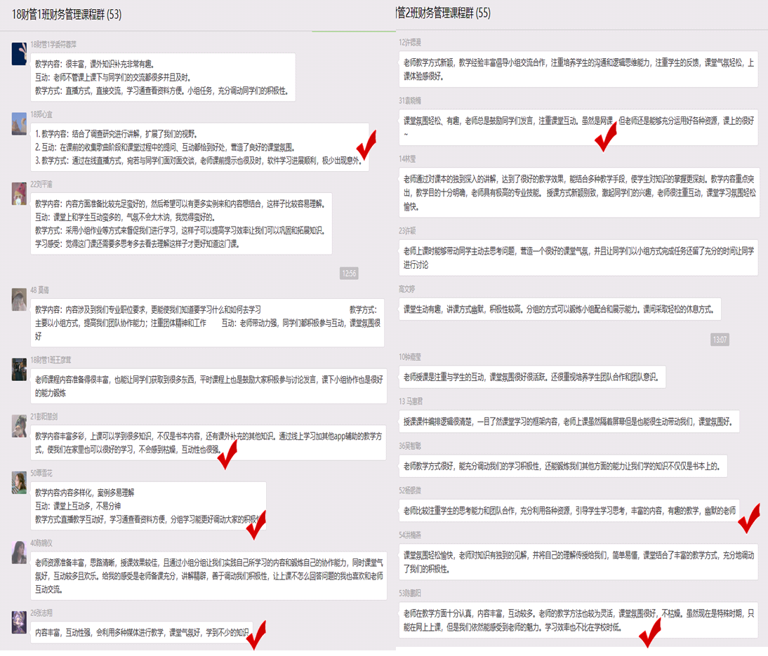 该课程课后及时对在线教学情况进行总结,及时收集学生反馈,继续保持课堂亮点,发现并总结存在的不足,制定进一步改进计划。
