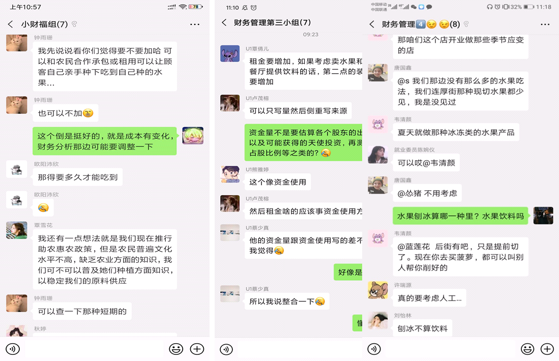 虚拟课堂最大的问题是难以监控学生的学习过程,本课程以学生为中心采用了任务驱动引导互动的方式尝试解决。首先,除了在教学内容安排上,确保教学内容的趣味性和实用性外,还需保证教学素材多样化,通过图片、视频等设计更多的讨论主题;其次,基于学习情境和学习任务,实施任务驱动做中学,开展小组合作学习,实施小组积分制,引导和鼓励学生利用丰富的线上网络及教学资源自主探索学习,并对学习成果进行分享和评价,促进知识内化。最后,在互动方式上,鼓励学生在小组群充分讨论、在班群各抒己见,抽点同学通过视频和音频发表观点,实现生生之间师生之间小组之间的多重互动交流。