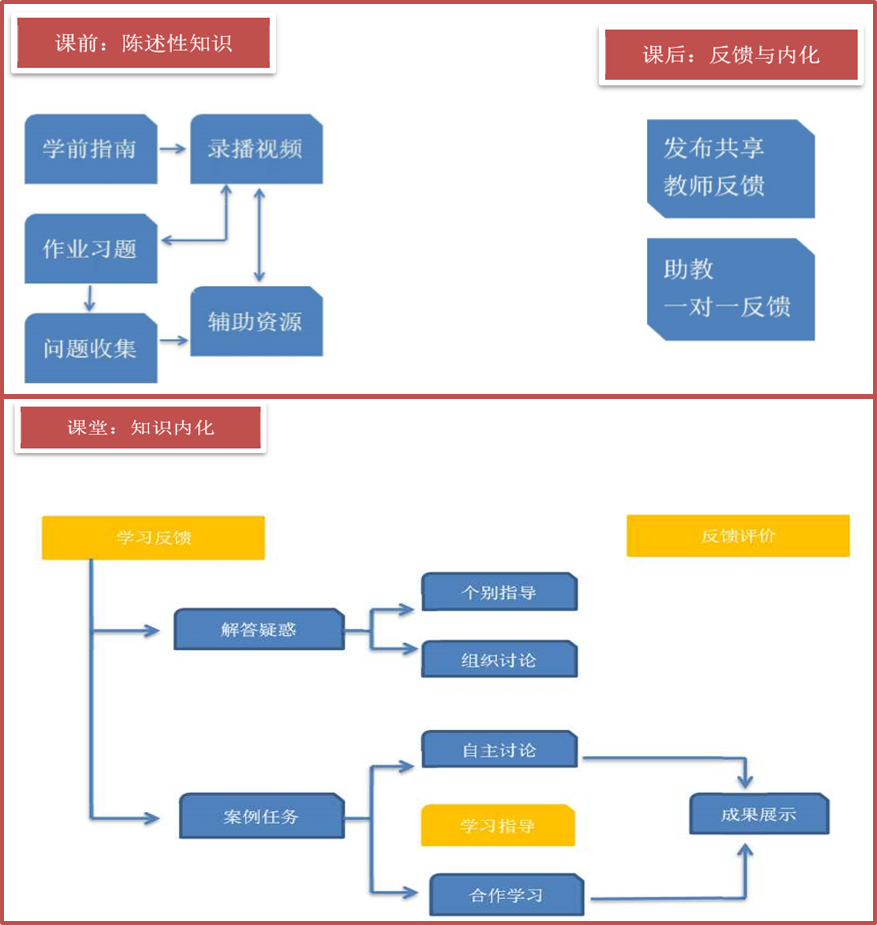 按照上述思路,课前,课中,课后的活动就可以重新整合成下图的模式,更好的帮助学生内化知识。