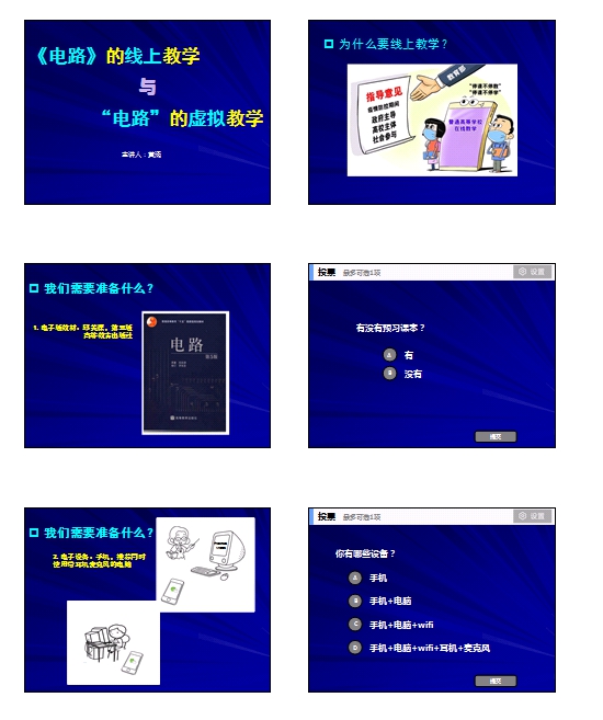 在《电路》线上课程教学中,黄涌老师综合使用各在线平台和互动工具,将“在线视频/音频会议+在线教育平台+在线交流平台”三合一使用,让教学班级每一位同学参与线上教学,实现沟通零障碍,保证教学活动高质量开展,100%覆盖4个教学班级班167名学生,让每一位同学都能接收在线教学资源。