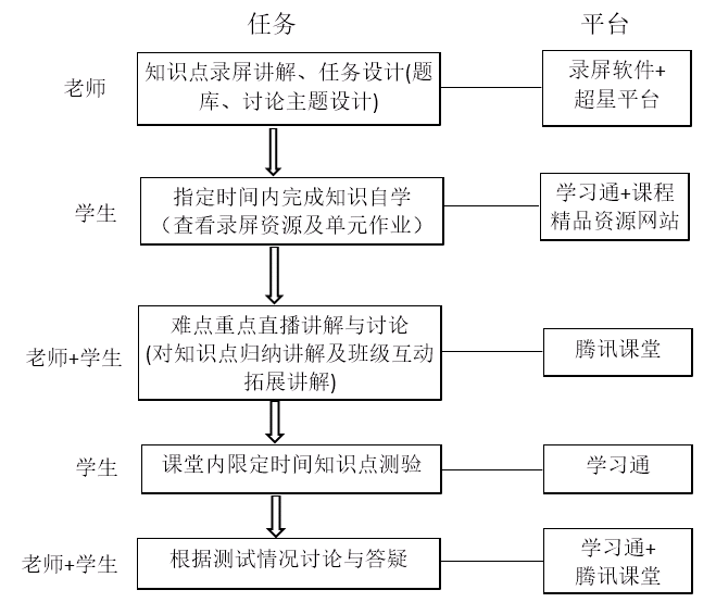 对照闭环教学方案,将教学过程分解为课前、课中和课后三个环节。课前以教师为主体,以给学生提供“精口粮”和培养兴趣为目标,优化课程知识点,精心设计教学内容。课中以学生为主体,融入课程思政、引入奖惩制度,注重讨论环节,突出老师的引导和调动作用,帮助学生高质高效地吸收这份“精口粮”。课后及时反馈学情,敦促学生巩固所学内容,实现课程知识无盲点,实时调研课堂设计,师生协作,滚动优化课堂设计方案。通过“引导自学、积极讨论、及时反馈”实现闭环式在线教学。