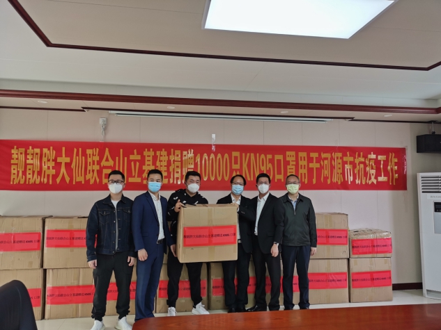 在捐赠仪式上,靓靓胖大仙电子商务有限公司、河源市山立基建实业有限公司向学校捐赠了KN95口罩10000只,价值150000元,以善举奉献爱心,助力抗“疫”。