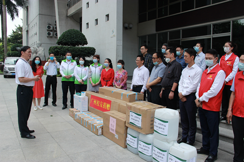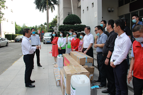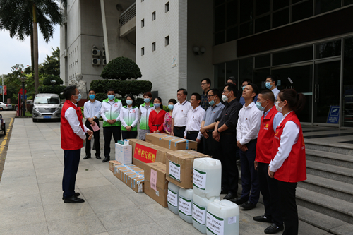 3月26日,广州校友代表一行携热心企业走访慰问母校并举行防疫物资捐赠仪式,捐赠仪式在东校区举行,学校党委副书记李向明代表学校接受捐赠。广州校友代表,广州雪松控股庆德物业管理有限公司等企业代表,以及校长办公室、后勤服务管理处、校友会办公室等部门负责人参加捐赠仪式。