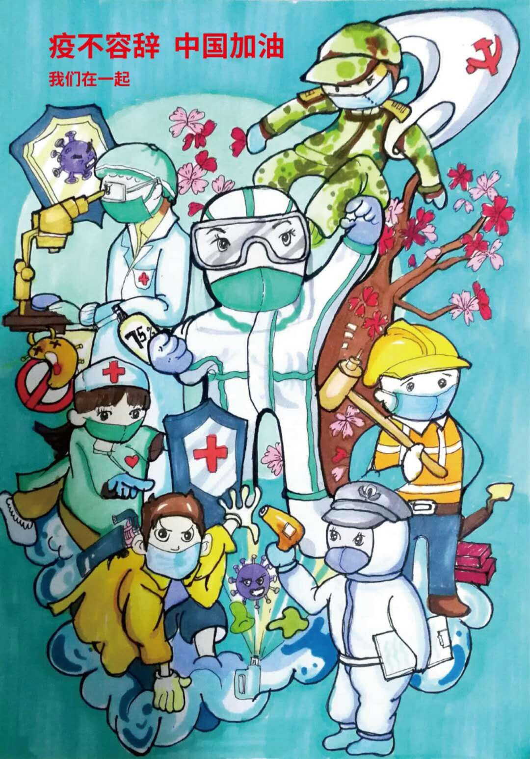 “武汉加油,中国加油!”,财经学院学生第一党支部全体党员认真学习全国战疫精神,学习最美“疫”行者的家国情怀和担当奉献精神,手绘对抗击疫情的美好祝福标语,为奋战在一线的“逆行者”加油打气。
