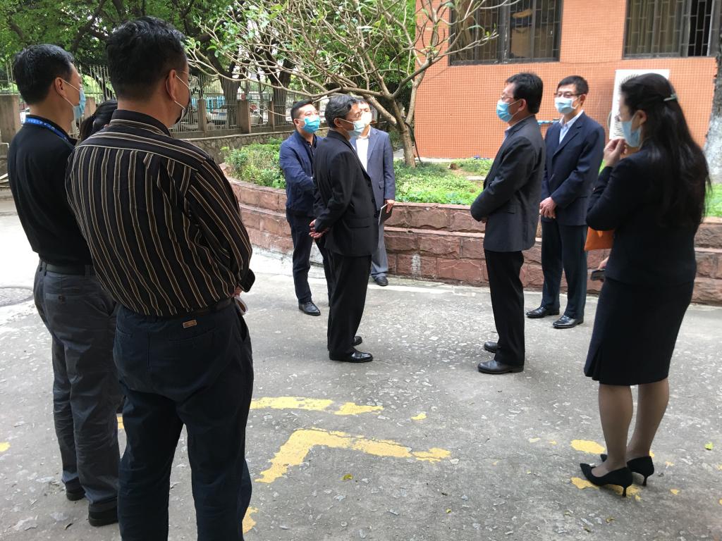4月10日下午,广州市纪委副书记王健率队到学校检查指导疫情防控工作。学校党委书记凌靖波,党委副书记、纪委书记贺勇,党办、后勤服务管理处、保卫处、国际教育学院等有关单位负责人陪同检查。
