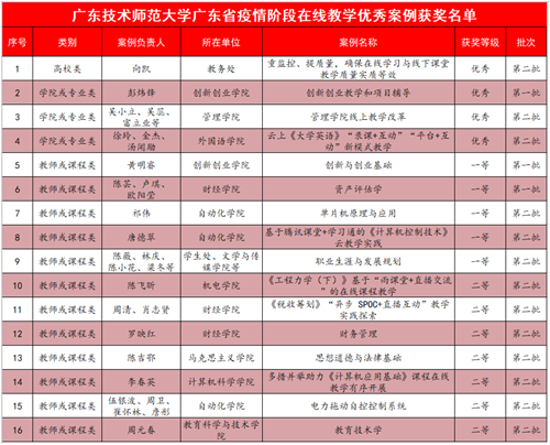 日前,广东省本科高校在线开放课程指导委员会主办的两批本科高校疫情阶段在线教学优秀案例评选活动圆满结束。伟德官网教师在该活动中取得佳绩,共获得16项奖项。