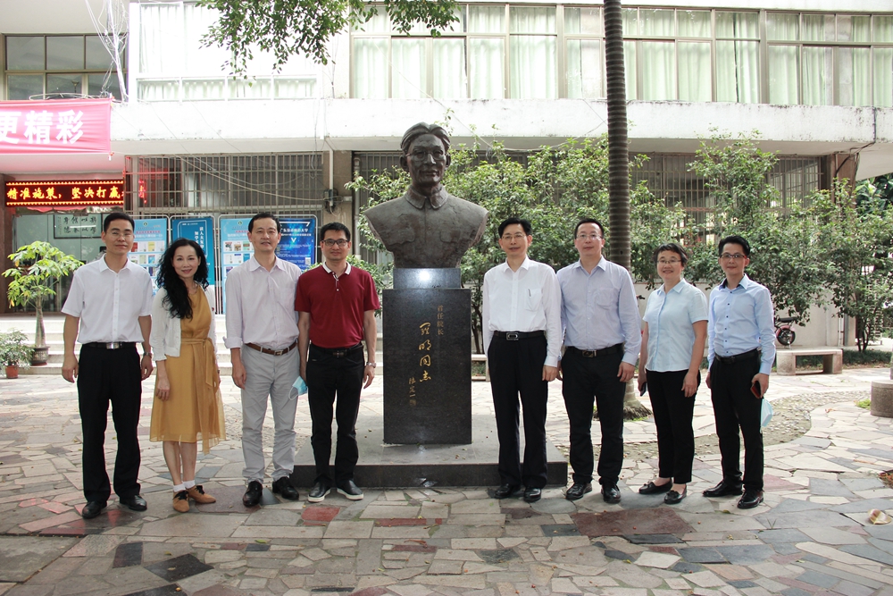 座谈后,校友们饶有兴致地参观校园,并在首任院长罗明同志塑像前合影留念。(校友会办公室 张伟聪)