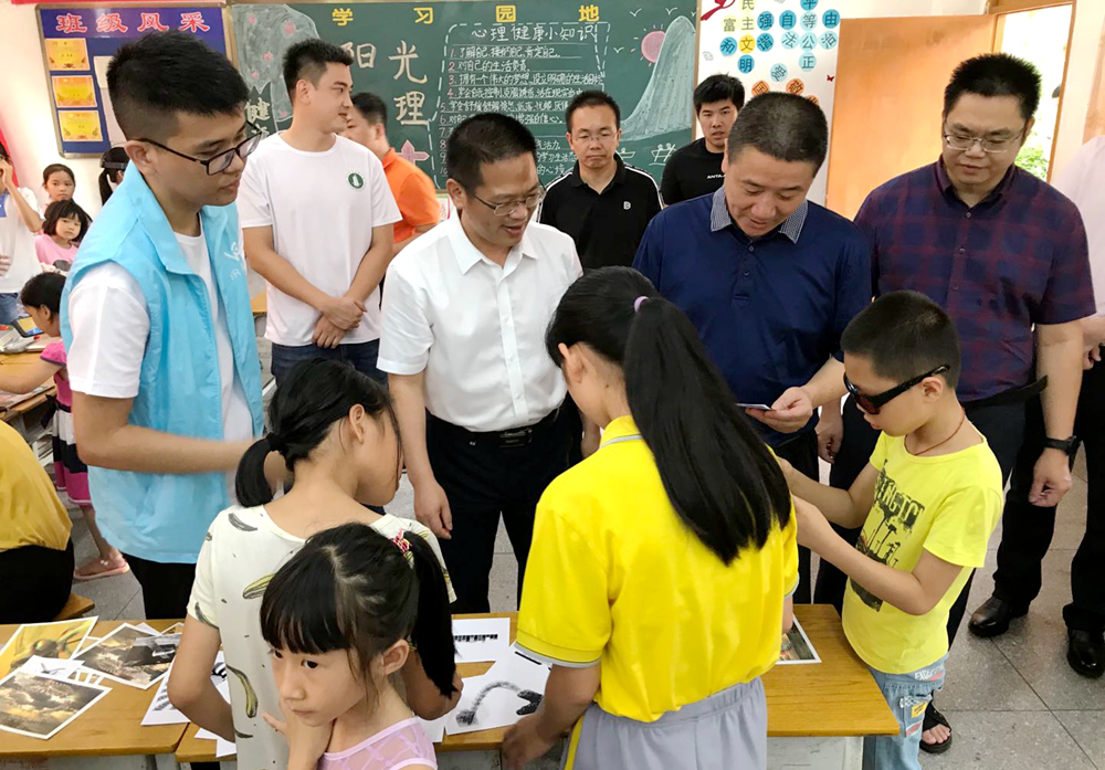 7月29日,广东省教育厅政务服务中心主任梅毅一行4人前往河源市紫金县南岭中心小学,亲切看望伟德官网光电工程学院社会实践团队。学校党委副书记李向明、紫金县副县长梁鹏程、南岭镇委书记李威,校长办公室、团委、光电工程学院相关负责同志陪同参加活动。