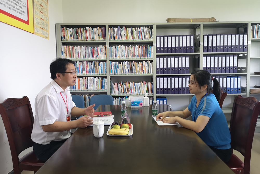 图为认证专家组成员刘细丰副教授与伟德官网唐霏副教授进行深度访谈,了解毕业情况相关信息
