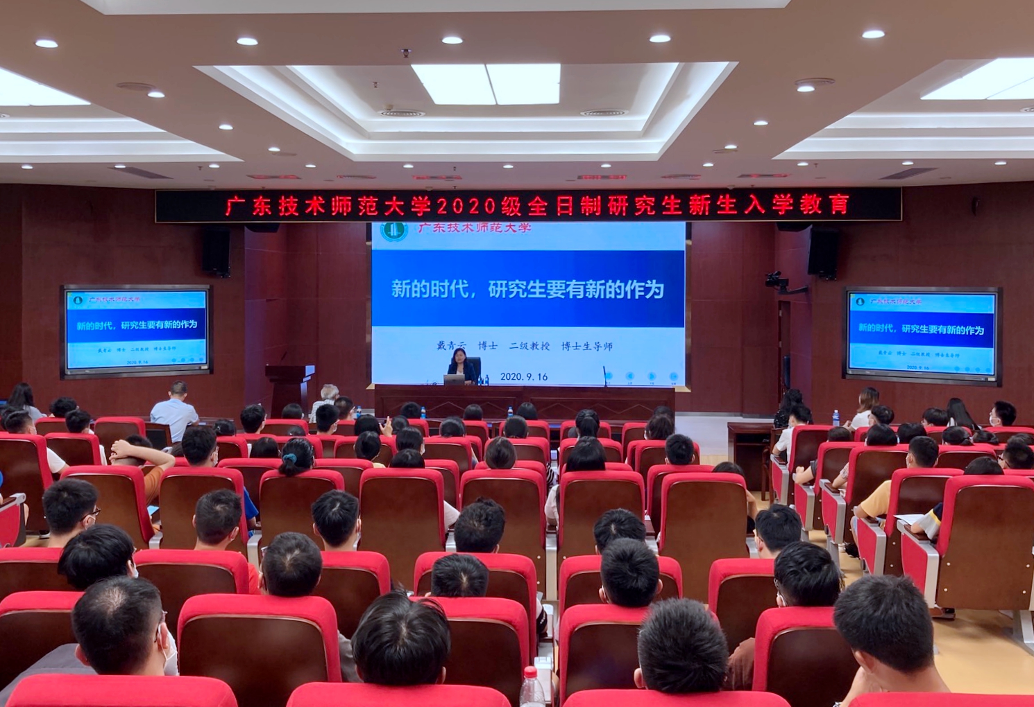 9月16日下午,伟德官网开展2020级全日制硕士研究生新生入学教育,入学教育主会场设在东校区一教208讲学厅,在东校区一教209课室和白云校区三教学术报告厅设置了分会场,通过网络直播的方式使全体新生共同参与入学教育。副校长戴青云,研究生处全体人员,研究生辅导员,研究生秘书和2020级全日制硕士研究生出席了新生入学教育。入学教育由研究生处负责人主持。