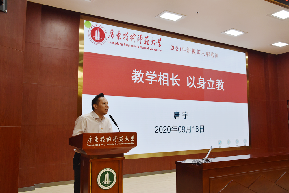 随后,学校达之青年学者、广东省青年珠江学者、广东特支计划科技创新青年拔尖人才唐宇教授作了题为“教学相长 以身立教”的讲座。唐宇结合自身成长经历分享了在教学过程中,如何用自己的实际行动和人格魅力感染学生、影响学生,做到领悟为师之道,正其身;创新教学之道,明其理;精于科研之道,求超越;以“人格修养、仁爱之心、终身学习、治学严谨”的好老师标准要求自己,不忘初心,砥砺前行。