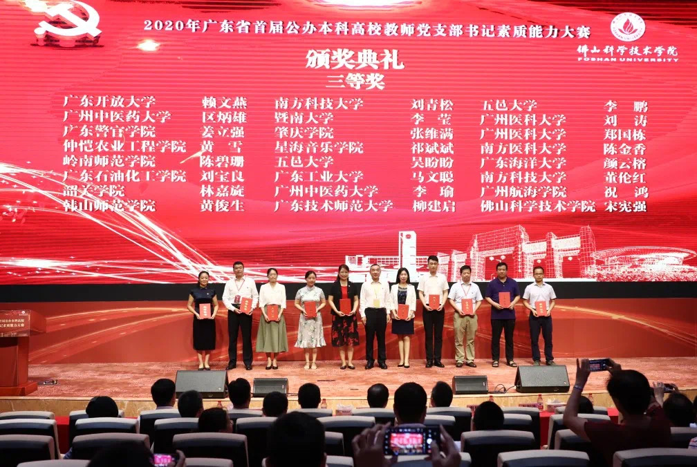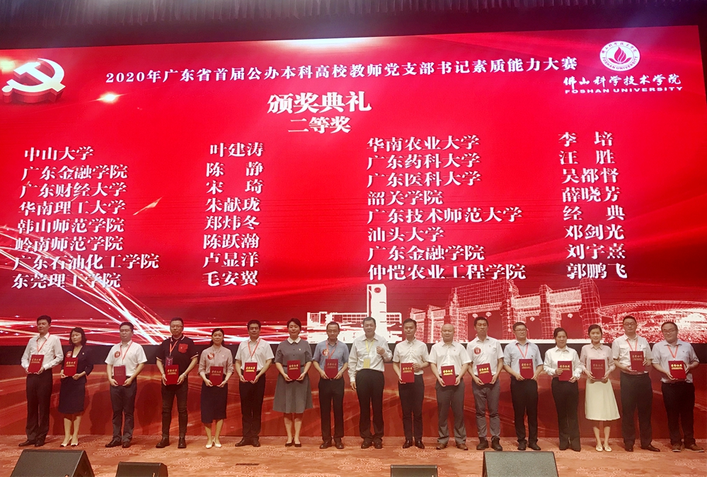 为贯彻落实新时代党的建设总要求,落实全面从严治党要求、加强高校基层党组织建设,选树培育一批优秀教师党支部书记,9月26日,由中共广东省委教育工委主办、省高校党建研究会本科分会承办的2020年广东省首届公办本科高校教师党支部书记素质能力大赛决赛第二阶段现场赛在佛山科学技术学院举行。全省39所公办本科高校共78名“双带头人”教师党支部书记参加了比赛,伟德官网民族学院教工党支部书记经典老师和法学与知识产权学院法学科研团队教工党支部书记柳建启老师分获二、三等奖。
