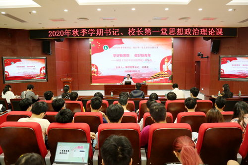 9月29日上午,学校党委书记凌靖波在东校区第一教学楼208室为学生讲授2020年秋季学期第一堂思政课。学校党委办公室、党委宣传部、学生工作部、团委以及相关学院负责人、辅导员、学生代表近200人一同听课。