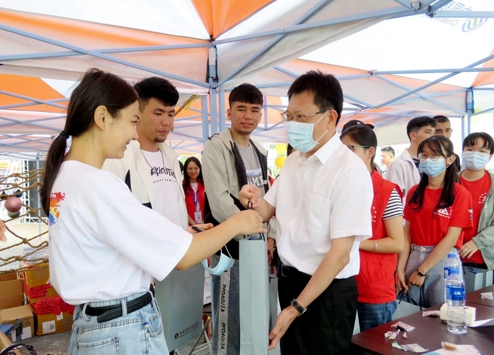 凌靖波、骆少明看望慰问了参加迎新工作的师生员工,听取了各学院和学生处负责人的汇报,并对各部门、各学院疫情防控常态化工作提出了具体要求。