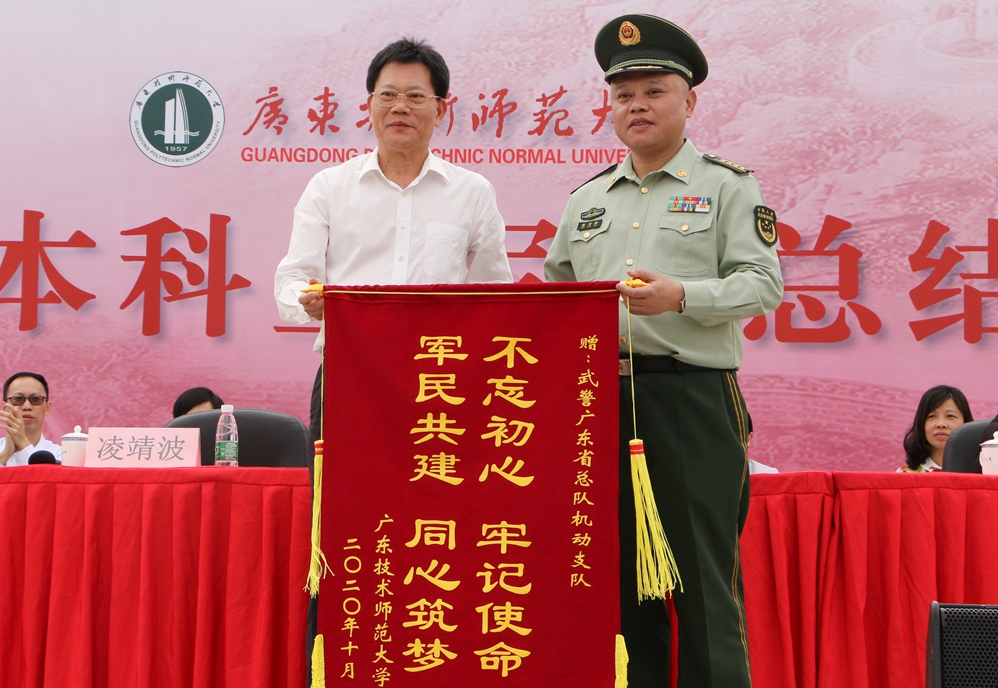 凌靖波代表学校向武警广东省总队机动支队赠送锦旗。
