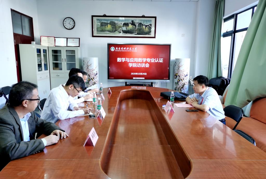 教育部师范类专业认证专家组成员、西南大学人工智能学院副院长王建军教授和数学与系统科学学院班子成员、数学与应用数学师范专业负责人等座谈。