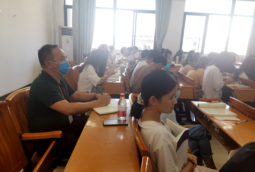 教育部师范类专业认证专家组成员、云南师范大学教务处处长兼云南高等学校教师教育联盟办公室主任、课程中心主任陈新教授听取数学与系统科学学院2018级师范生上课情况。