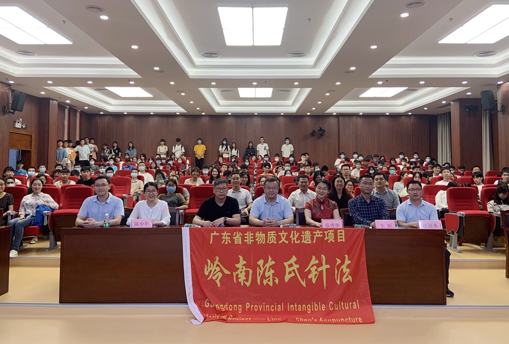陈秀华以“中医治未病与秋季经络养生”为主题,阐释了人体春生、夏长、秋收、冬藏的道理。陈秀华从精神养生、饮食养生、体育锻炼养生、药物养生等方面向大家讲授了中医养生的要点;深入浅出地讲解了针灸、火罐、刮痧、刺血、敷贴、熏蒸、沐足等传统保健疗法,体现了中医治未病的学术思想。陈秀华现场展示了广东省非物质文化遗产项目--岭南陈氏针法,让在场师生感受到了我国传统文化的魅力。