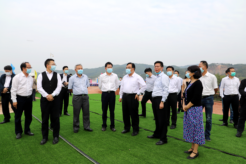 丁红都一行先后到校训石平台、观景台等地参观,现场听取了苏晖关于河源校区首期建设以及中远期规划发展情况介绍。