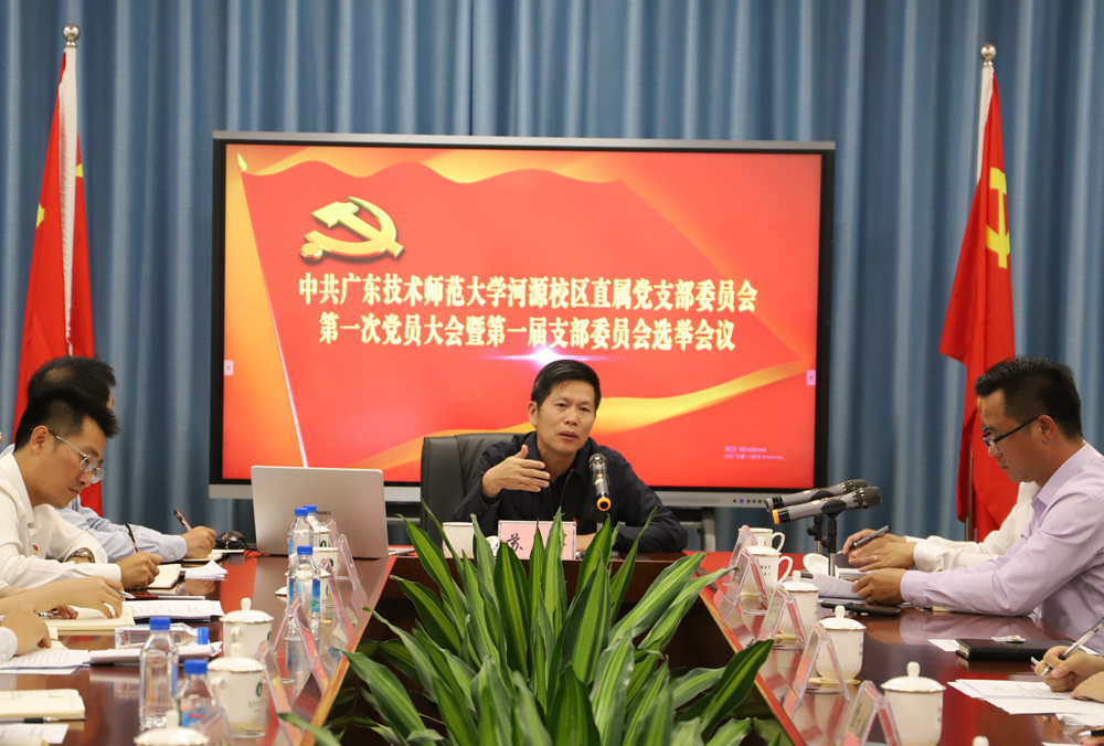 苏晖代表学校党委向大会的召开表示热烈祝贺。他表示,河源校区直属党支部的成立,标志着河源校区的党建工作上了一个新的台阶,为河源校区的发展提供了更为坚强的组织保障,将大大加快河源校区的发展步伐。对于河源校区的党员、教职工和学生,党支部的成立也将为大家提供了更为温暖的组织关怀和更好的发展平台。苏晖代表学校党委对河源校区党支部的工作提出三点要求:一是加强政治理论学习,提升学以致用水平;二是擦亮支部政治底色,提升组织向心力;三是加大党支部建设力度,发挥好战斗堡垒作用;希望河源校区直属党支部建设成为模范支部和标杆支部,希望支部党员同志在河源校区各项工作中发挥先锋模范作用,提升服务能力水平,用出色的工作业绩为党旗增光添彩。