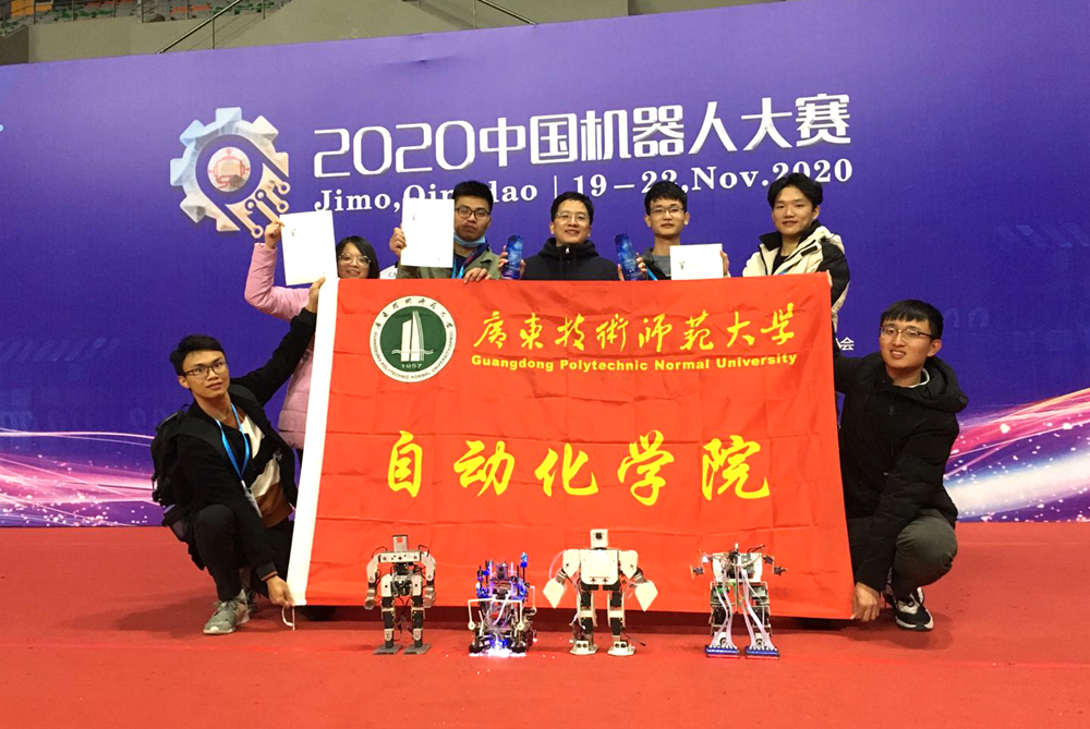 近日,2020中国机器人大赛在青岛落幕。伟德官网自动化学院派出3支参赛队伍,共获一等奖3项。其中,由丁韩、王玉龙、许铭杰、张佳乐、陈俊威和何焯正组成的代表队(指导老师:袁飞、许兆庆)获车型机器人智能搬运赛冠军,苏乐、林新燊、姚林欣、郭碧华和卢钟坚组成的代表队(指导老师:许兆庆、袁飞)获类人形机器人竞技全能赛季军,陈祖诚、冯诗婷、陈佳枝、陈文霞和蔡智萍获舞蹈机器人——双足人形项目一等奖(指导老师:祁伟、袁飞)。