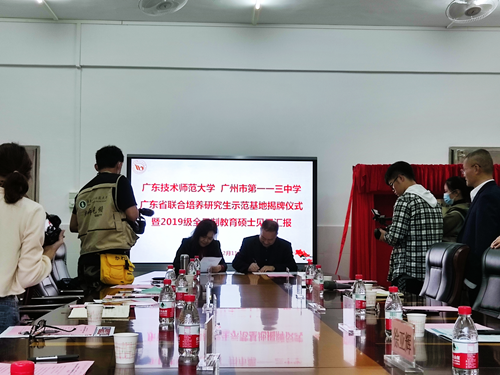 12月11日,伟德官网与广州市第一一三中学共建“广东省联合培养研究生示范基地”签约挂牌仪式在广州市第一一三中学举行,这是伟德官网首个基础教育研究生联合培养省级示范基地。学校副校长戴青云,研究生处处长崔怀林、文学与传媒学院院长周卫忠、研究生处陈泳竹副处长,广州市第一一三中学校长程印贵、党支部书记刘利、副校长葛红霞、徐亚辉等出席了签约挂牌仪式。