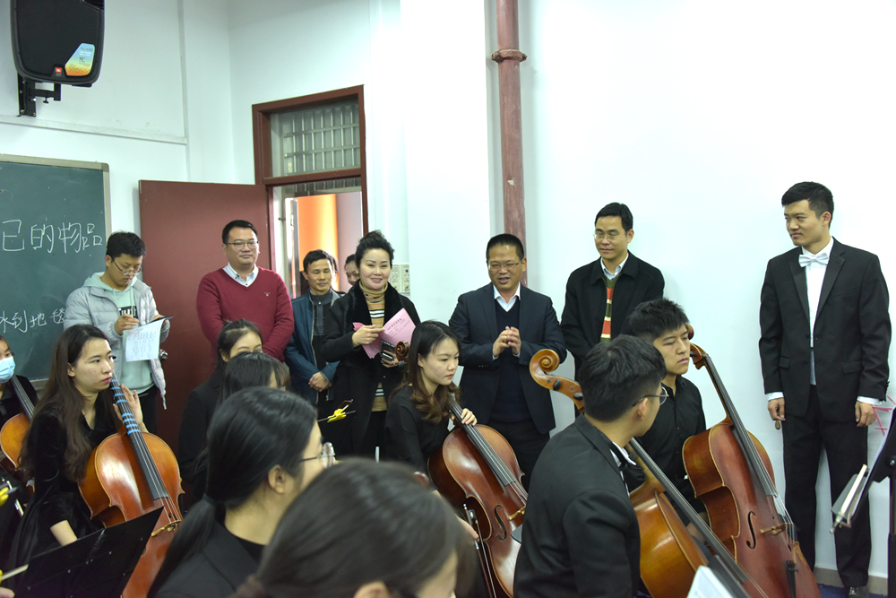 12月22日下午,学校2021年新年音乐会节目在东校区第二教学楼音乐学院音乐厅正式彩排,学校党委副书记李向明在音乐学院党政负责人、校长办公室和团委负责人的陪同下,到彩排现场观看节目。