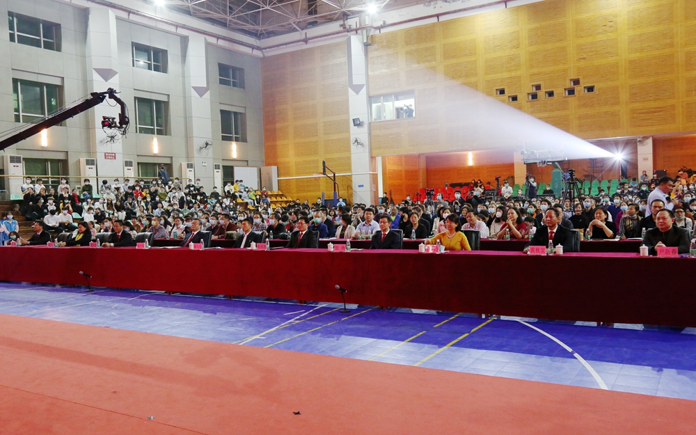 12月28日晚,由学校团委、音乐学院承办的伟德官网“匠心雅韵 唱响未来”2021新年音乐会在东校区综合体育馆举行。学校领导凌靖波、骆少明、贺勇、李向明、许玲、戴青云、黄秋文、苏晖,嘉宾代表省教育厅体卫艺处调研员康天东、广东舞蹈戏剧职业学院院长尹新春,学校各职能部门党政负责人、师生代表800余人出席现场音乐会,共同欣赏精彩演出,喜迎2021年。
