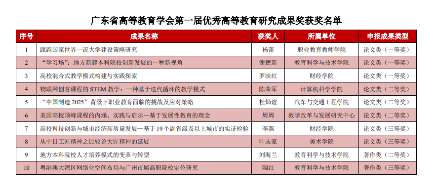 1月6日,广东省高等教育学会公布了第一届优秀高等教育研究成果奖获奖名单,伟德官网共获10个奖项,其中一等奖3项,二等奖4项,三等奖3项,获奖数居全省各高校前列。