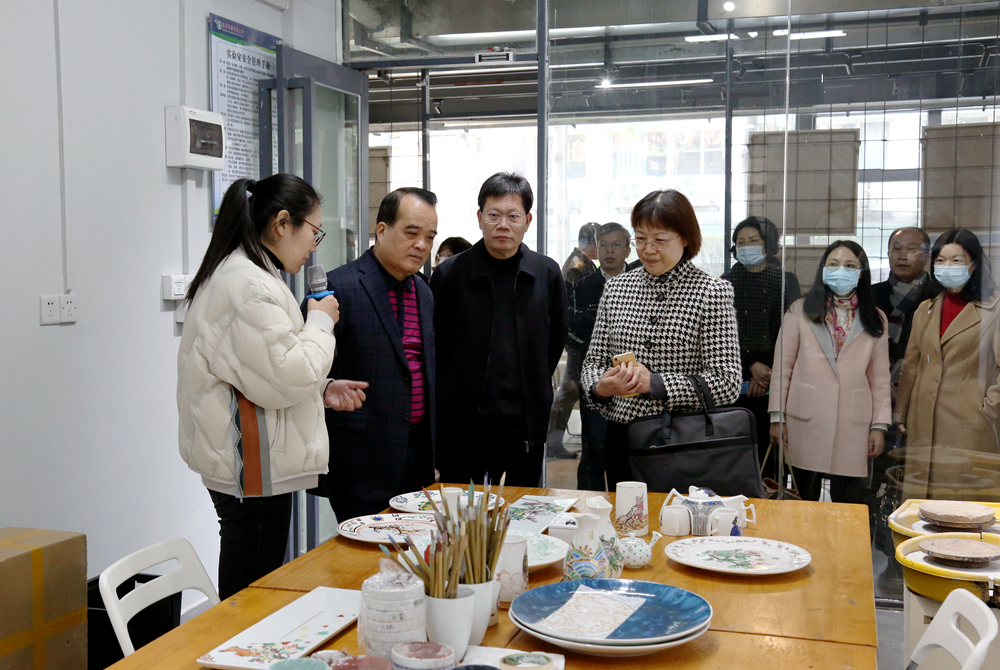 签约及揭牌仪式后,凌靖波还陪同陈华康一行参观了广东省知识产权大数据重点实验室、学校图书馆、非物质文化遗产传承大师工坊。