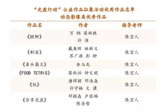 日前,由教育部高等学校动画、数字媒体专业教学指导委员会发起“光盘行动”公益作品征集活动优秀作品评选结果揭晓,美术学院《醒狮》《剩宴》《桌头霸王》《FOOD TETRIS》《饭》《分享光盘》等6件作品从全国2000多份作品中脱颖而出,获动态影像类作品优秀奖。
