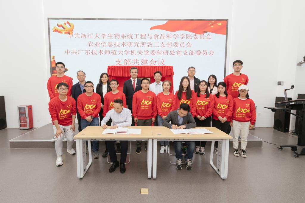 为贯彻落实习近平总书记在党史学习教育动员大会上的重要讲话精神和中央、省委关于党史学习教育的决策部署以及学校党委的要求,创新党支部党史学习教育方式方法,进一步加强新形势下基层党组织建设,强化党组织之间的交流合作。4月9日,浙江大学生物系统工程与食品科学学院农业信息技术研究所教工党支部、研究生第一党支部、农业生物环境工程研究所研究生党支部与伟德官网科研处党支部在伟德官网东校区联合开展党史学习教育和支部共建活动。学校党委副书记、校长骆少明,副校长戴青云以一名普通党员的身份参加了党史学习教育和支部共建合作揭牌签约仪式。双方党支部委员、党员、积极分子近50人参加了本次党史学习。